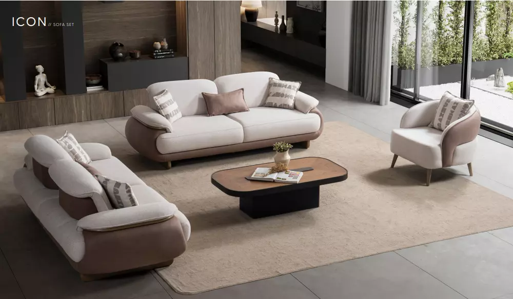 Takım içeriğinde 1 adet İcon Koltuk Takımı 3'lü Kanepe, 1 adet İcon Koltuk Takımı Berjer bulunmaktadır.