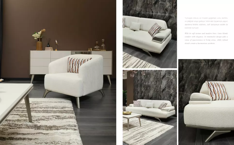 Takım içeriğinde 1 adet LUNA KOLTUK TAKIMI 3'lü Kanepe, 1 adet LUNA KOLTUK TAKIMI Berjer bulunmaktadır.